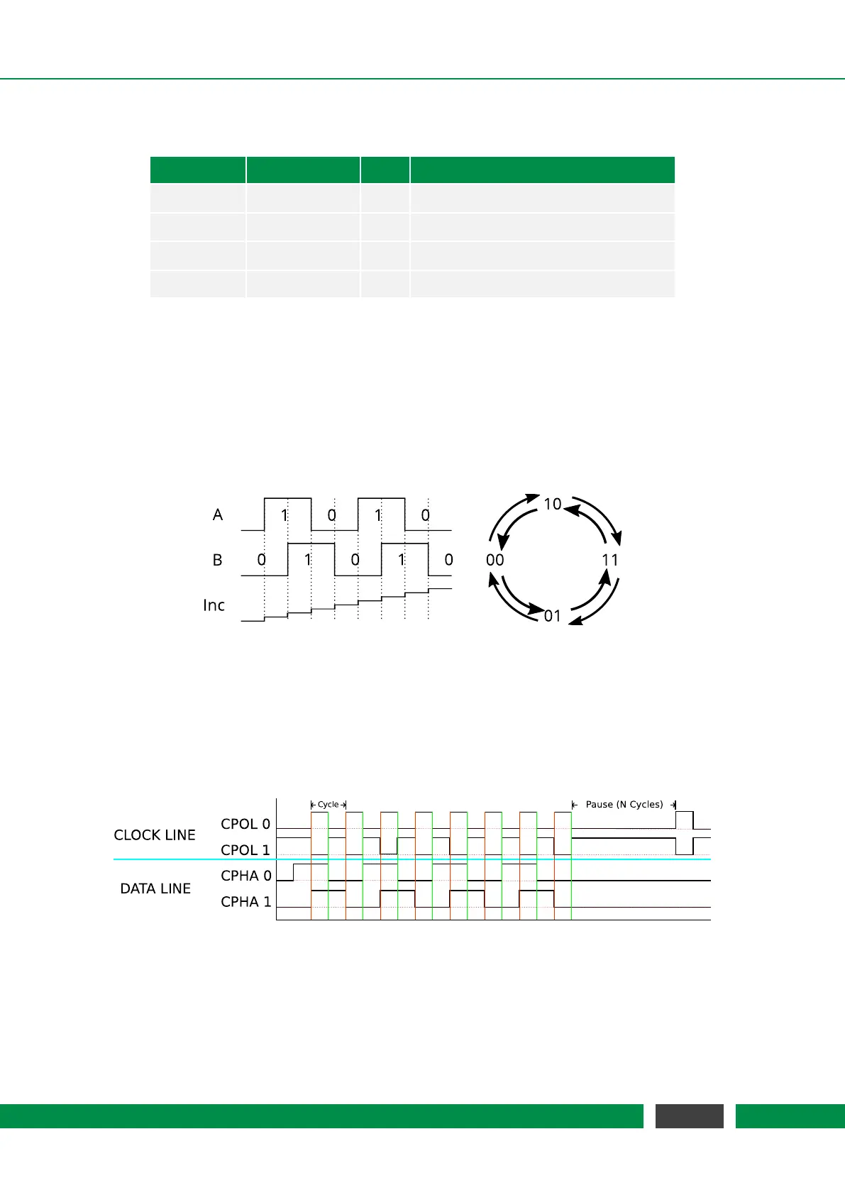 With the signals A and B four states can be encoded, each state indicates a position increment. So