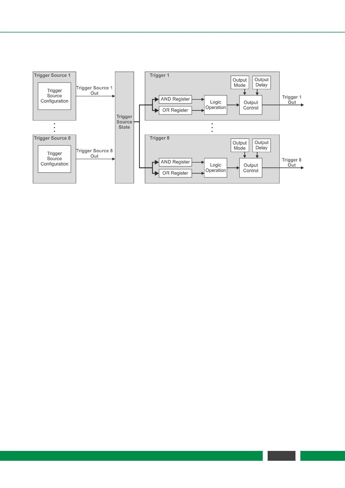 Each individual trigger source has an output signal, which can be logically HIGH or LOW. All trigger