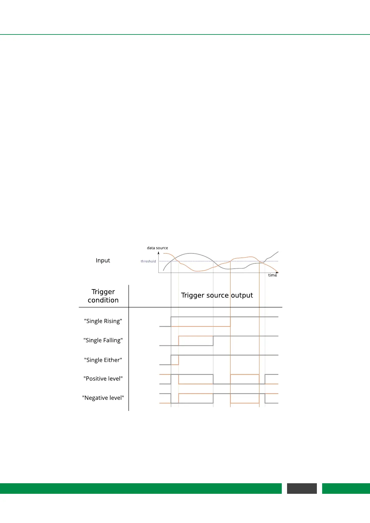 example) with a user defined threshold. The trigger conditions single rising, single falling,