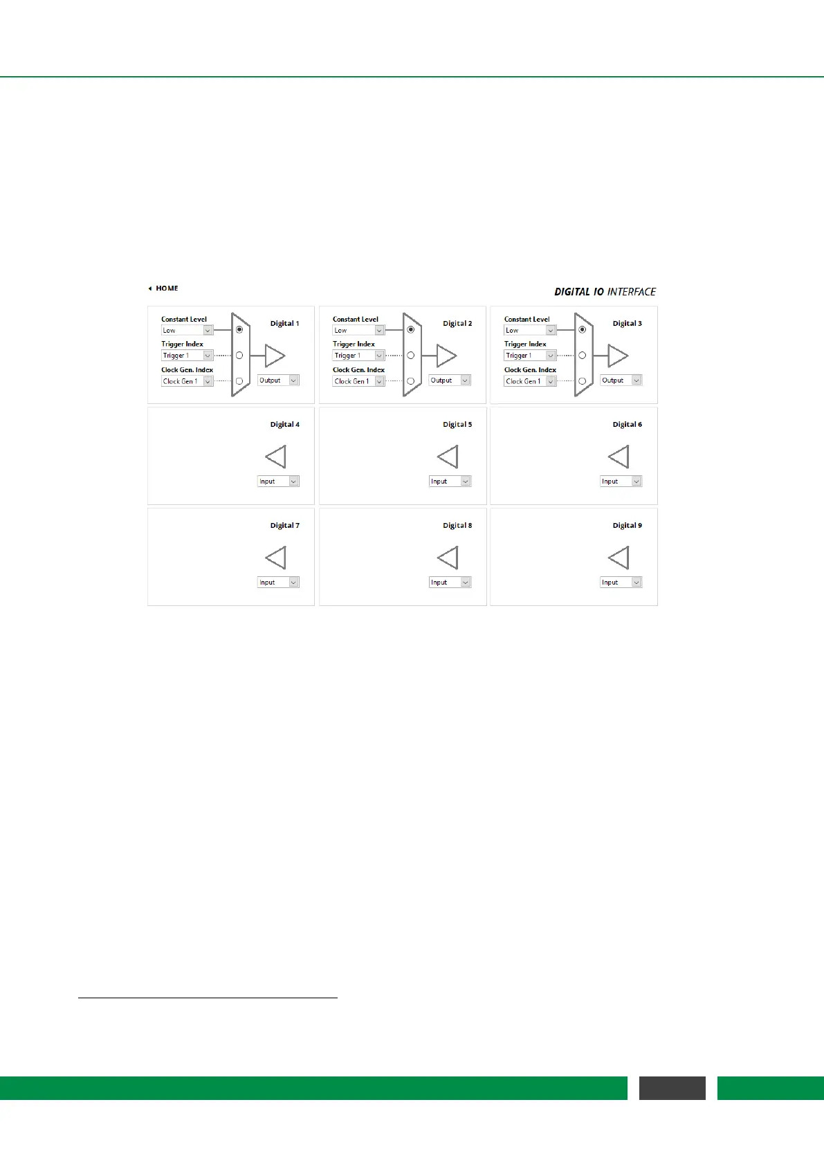 Figure 7.13 shows the Digital IO Interface Configuration panel. Each pin can be configured individu-