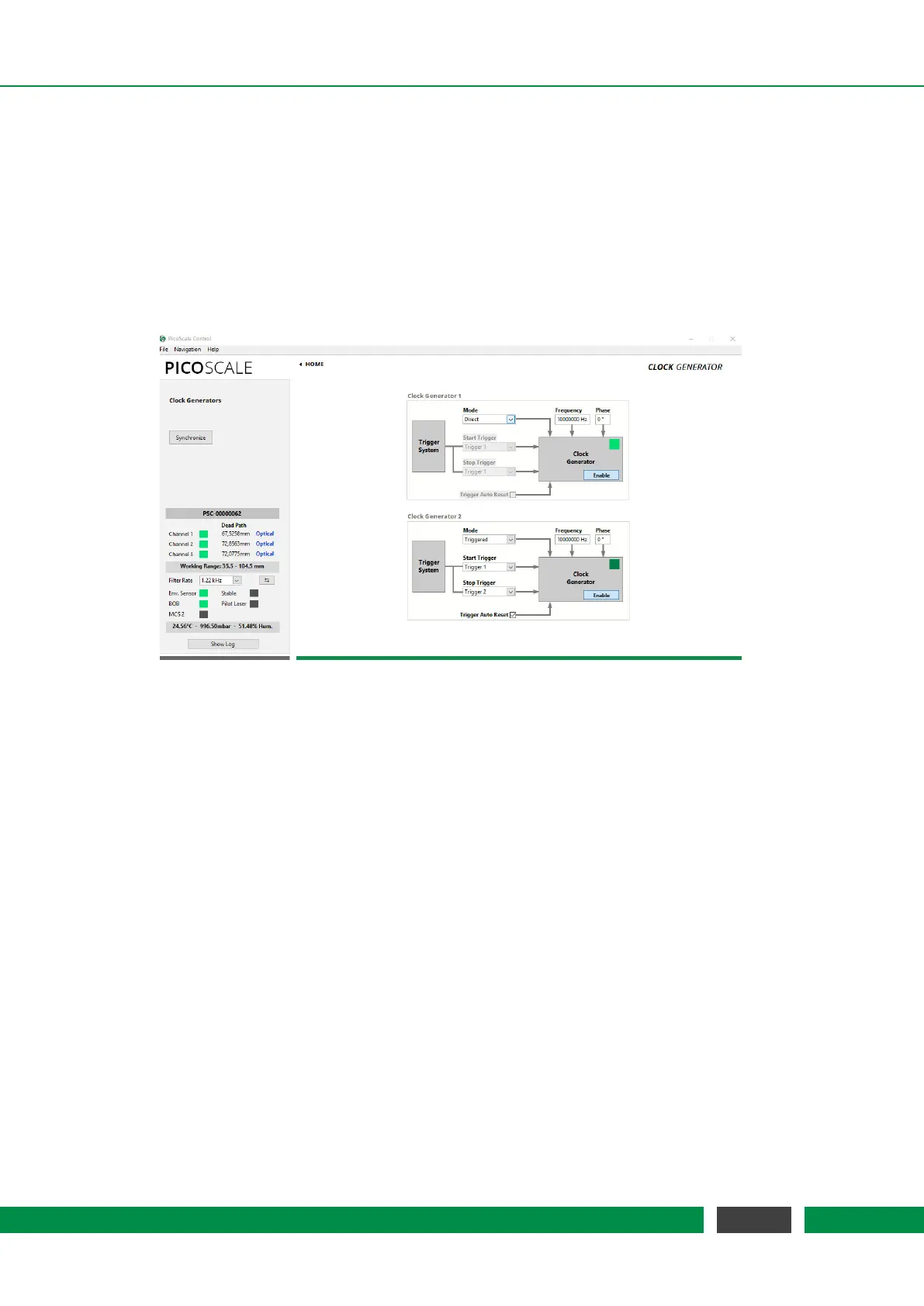 Enabling of each clock generator is done by the Enable button in the center of the each Clock Gen-
