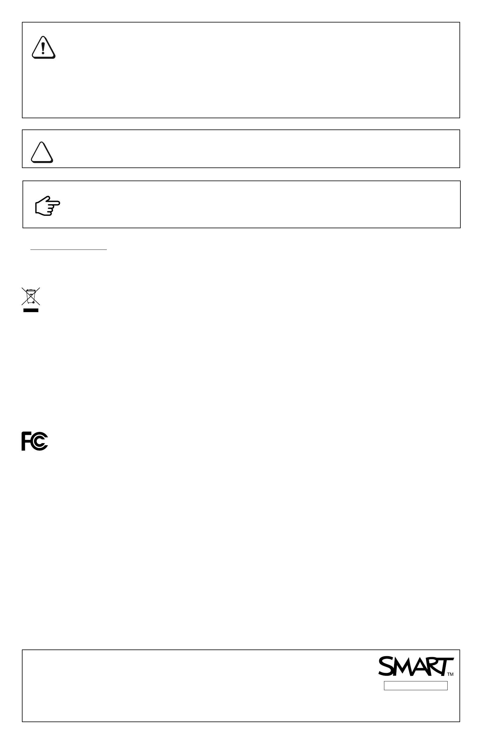 Do not climb (or allow children to climb) on your SMART Board interactive whiteboard. Climbing on the product could result in personal injury and product