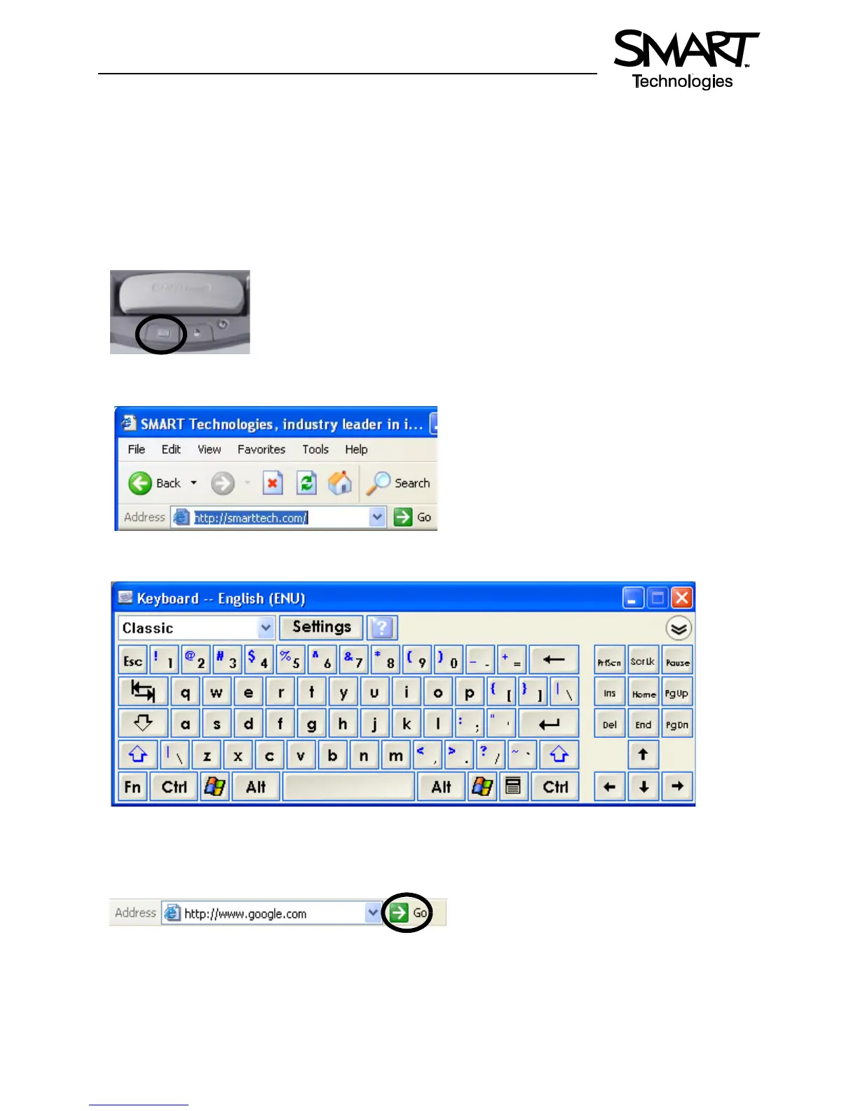 2 Press the On-Screen Keyboard button on the SMART Pen Tray.