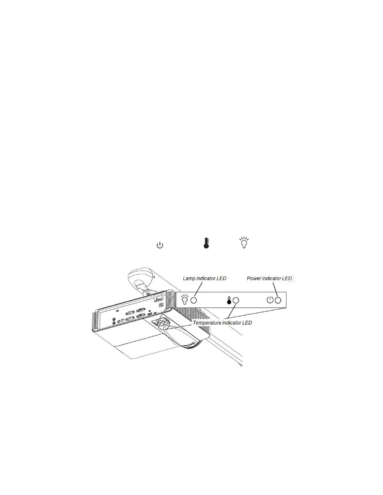 Your projector’s Power , Temperature and Lamp indicator lights are located on the