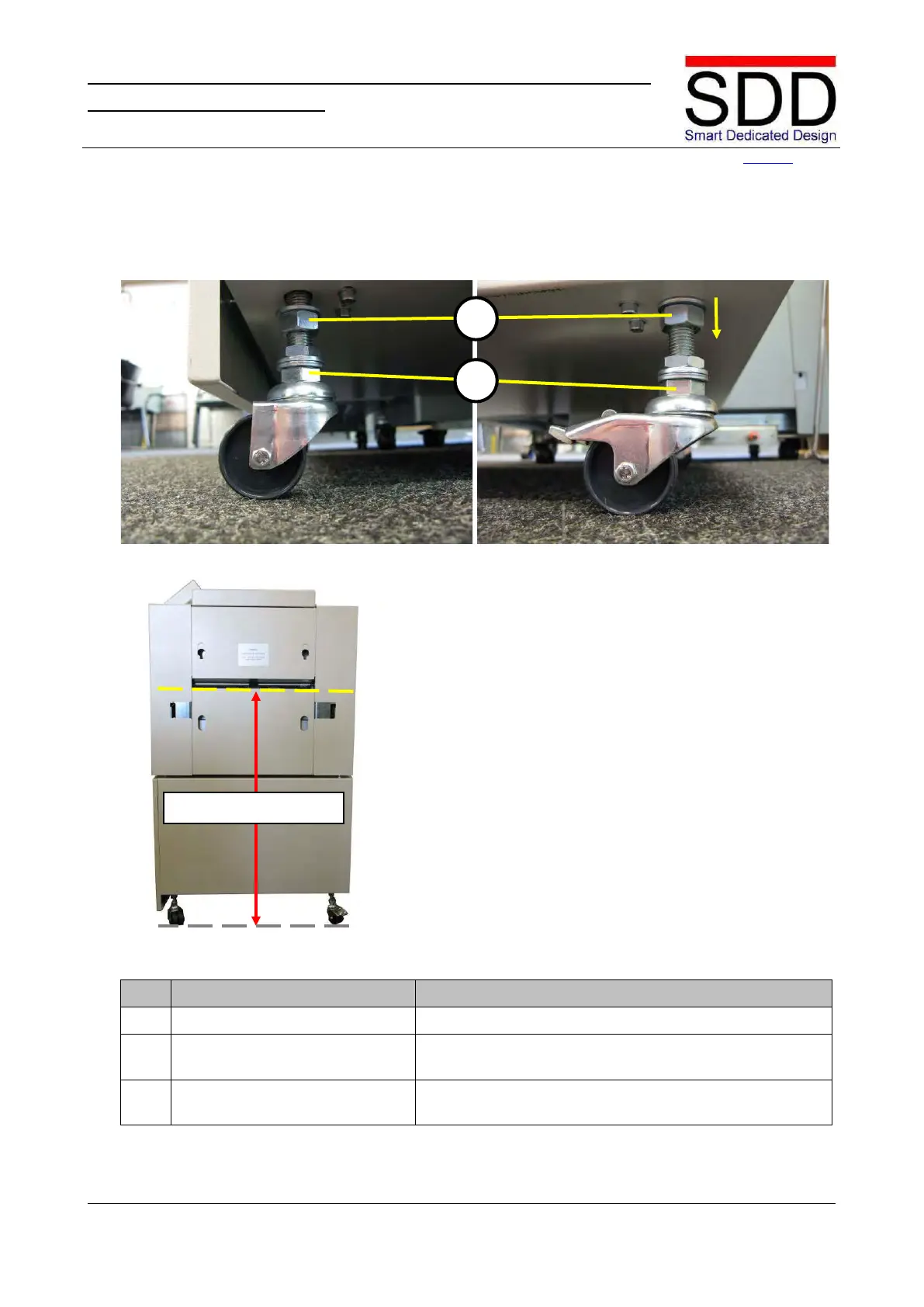 7. Set lower rim of STR Infeed to approximately 86 cm
