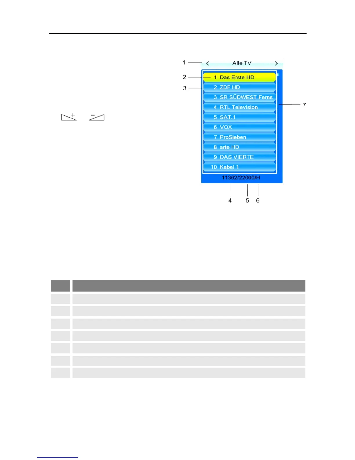 3. Select the channel to be displayed (2) by using the keys PR+ and PR- for
