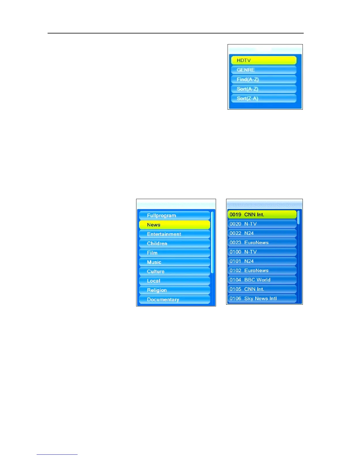 Smart Electronic CX01 - Channel Selection via Search Function; HDTV Filter; Genre Filter