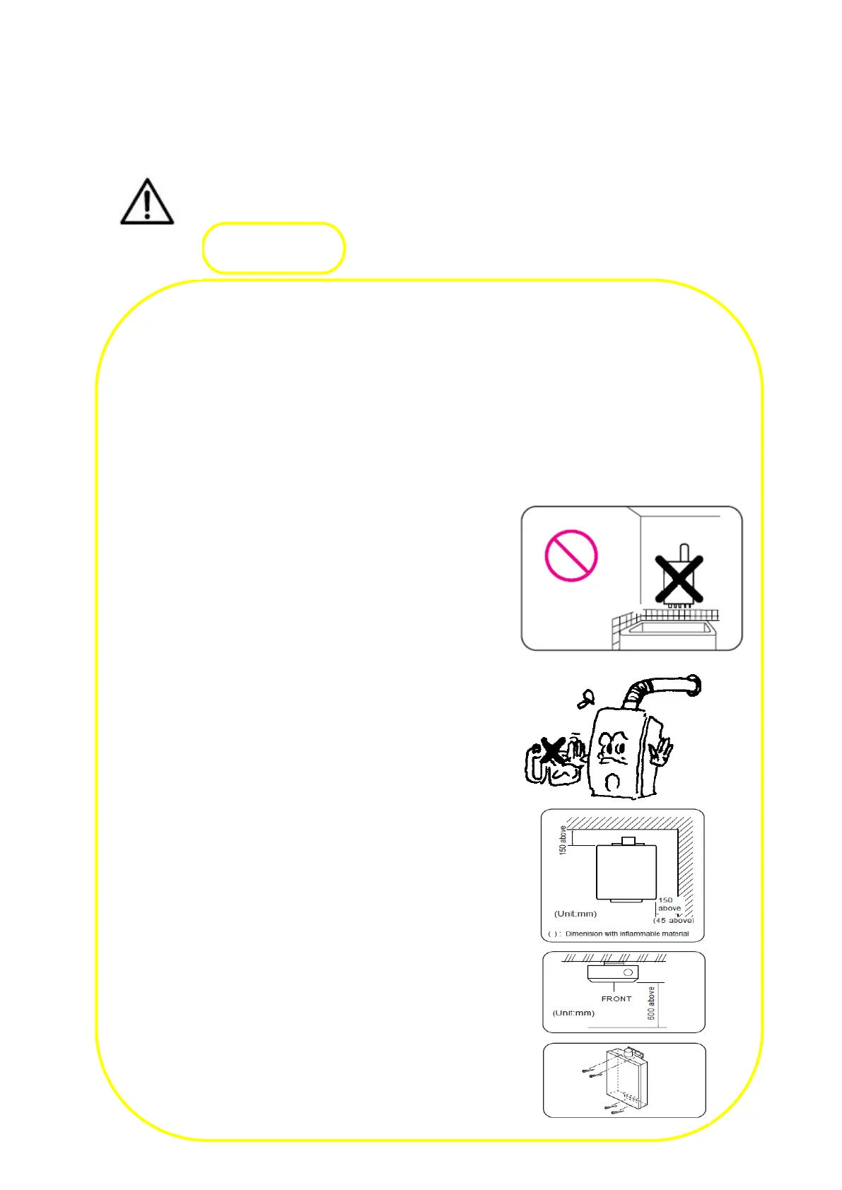 ㆍKeep away boiler from the front wall more than 600mm in