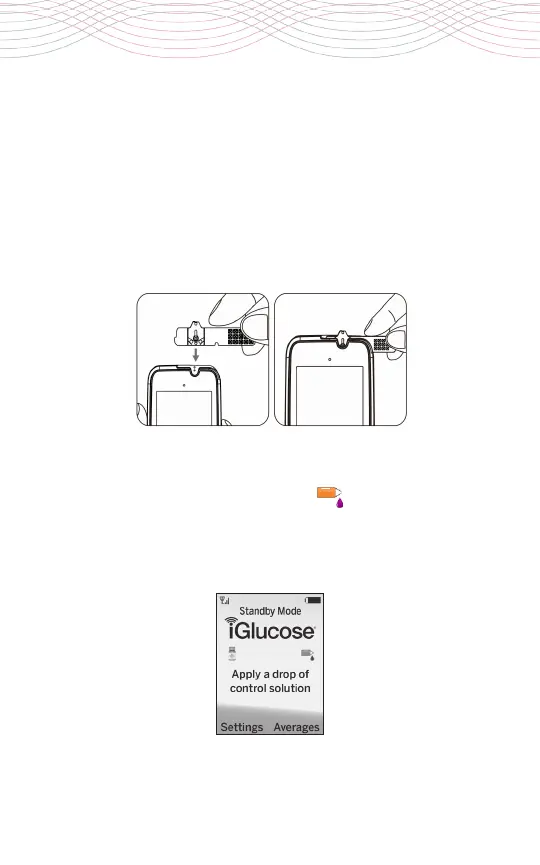 2. Insert the iGlucose® Test Strip into the test strip port straight
