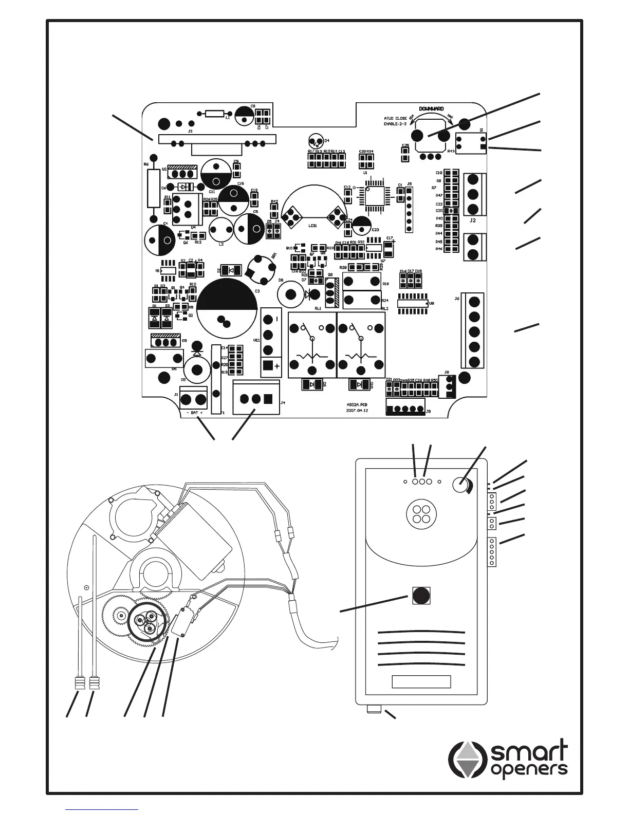 Smart Openers SMART ROLLER DUO - Operating Controls Overview; Control Board Components