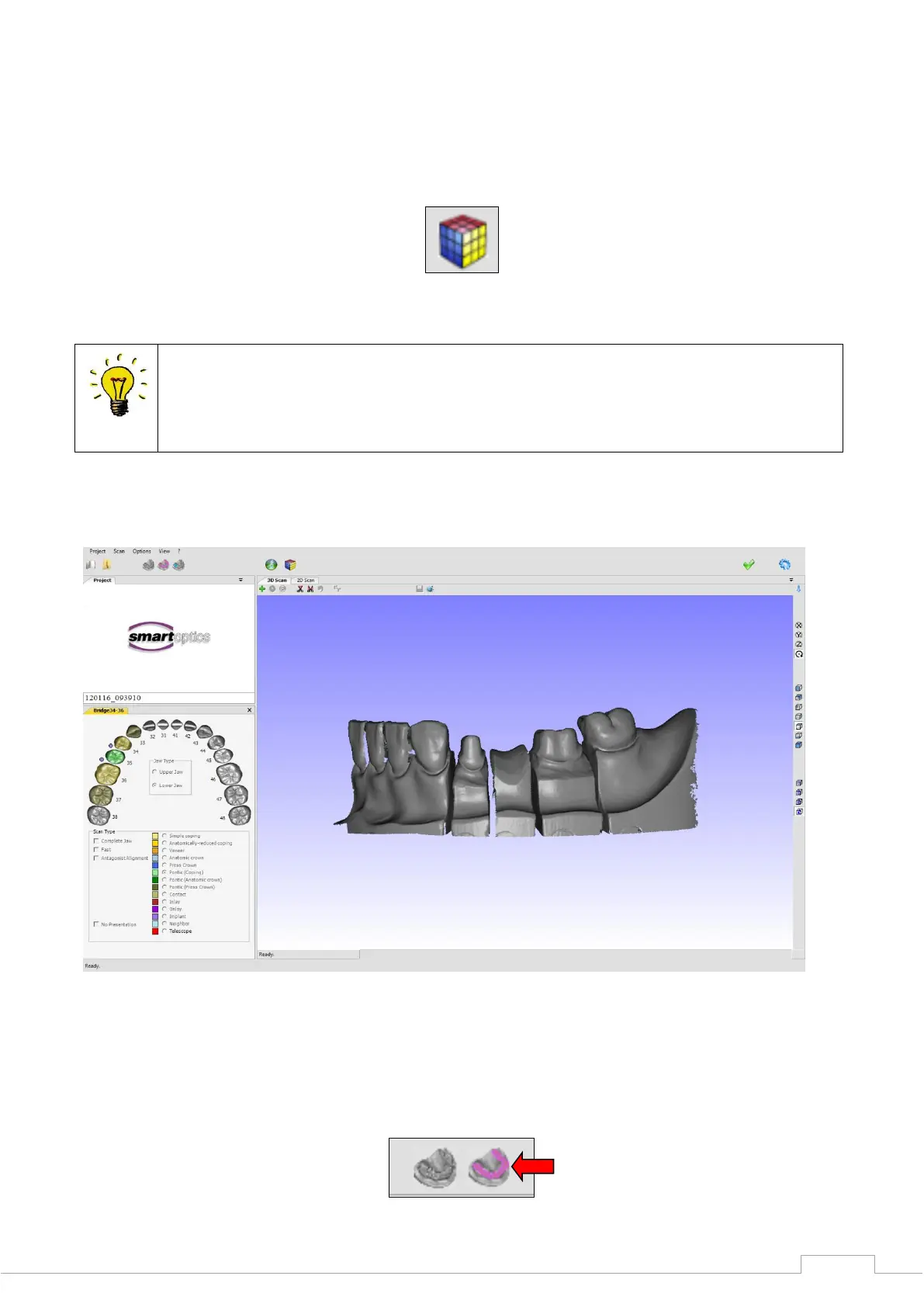 Once the model data set is compiled, it is possible to add a bite registration scan to the project.