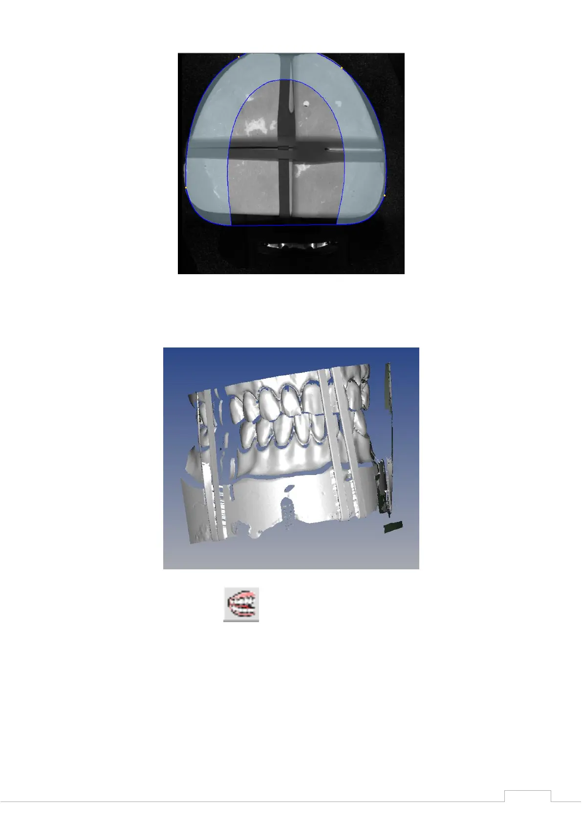 The outer sides (vestibular view) are scanned by the device, as shown below: