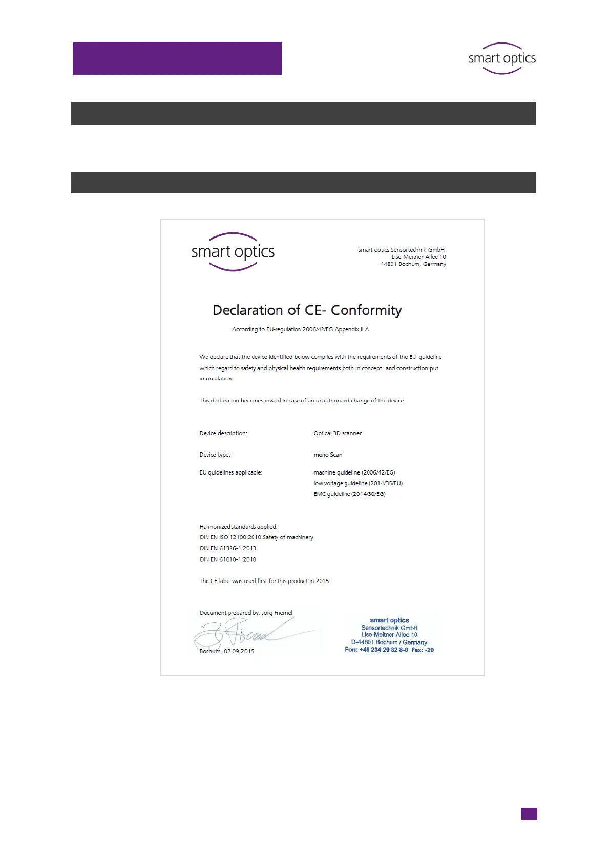 Smart Optics mono Scan - 19 Declaration of CE Conformity; Mono Scan