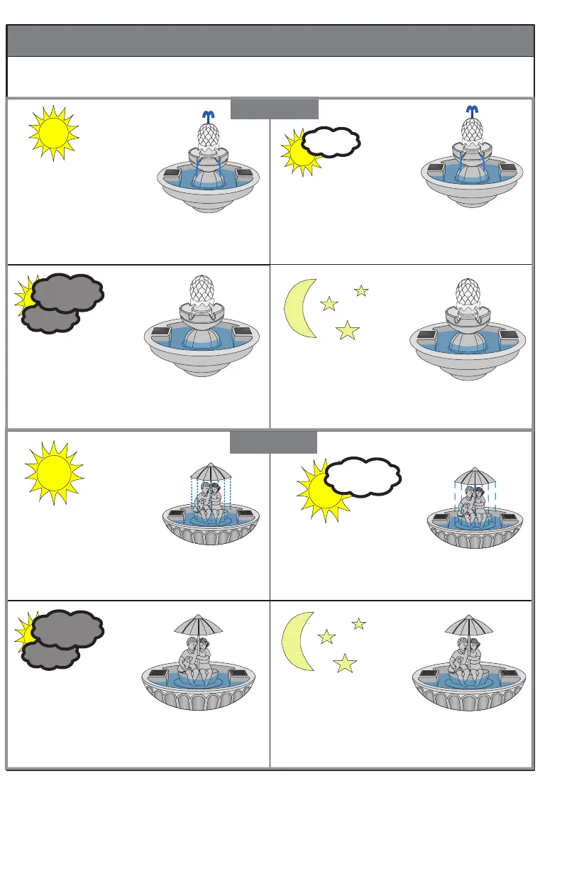 Position your fountain so that receives direct sunlight. The fountain will NOT work