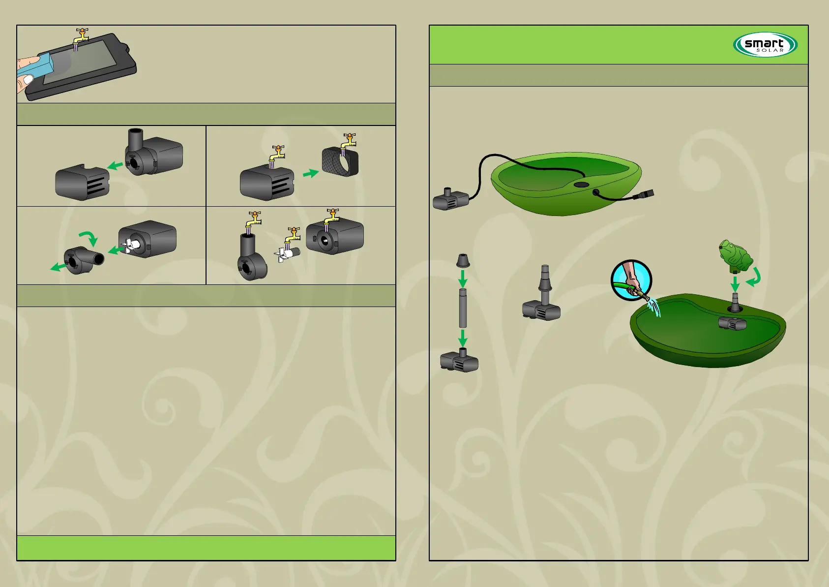 GB Offer the pump through the hole in the bowl and lower the spouting feature onto it. Ensure the bung