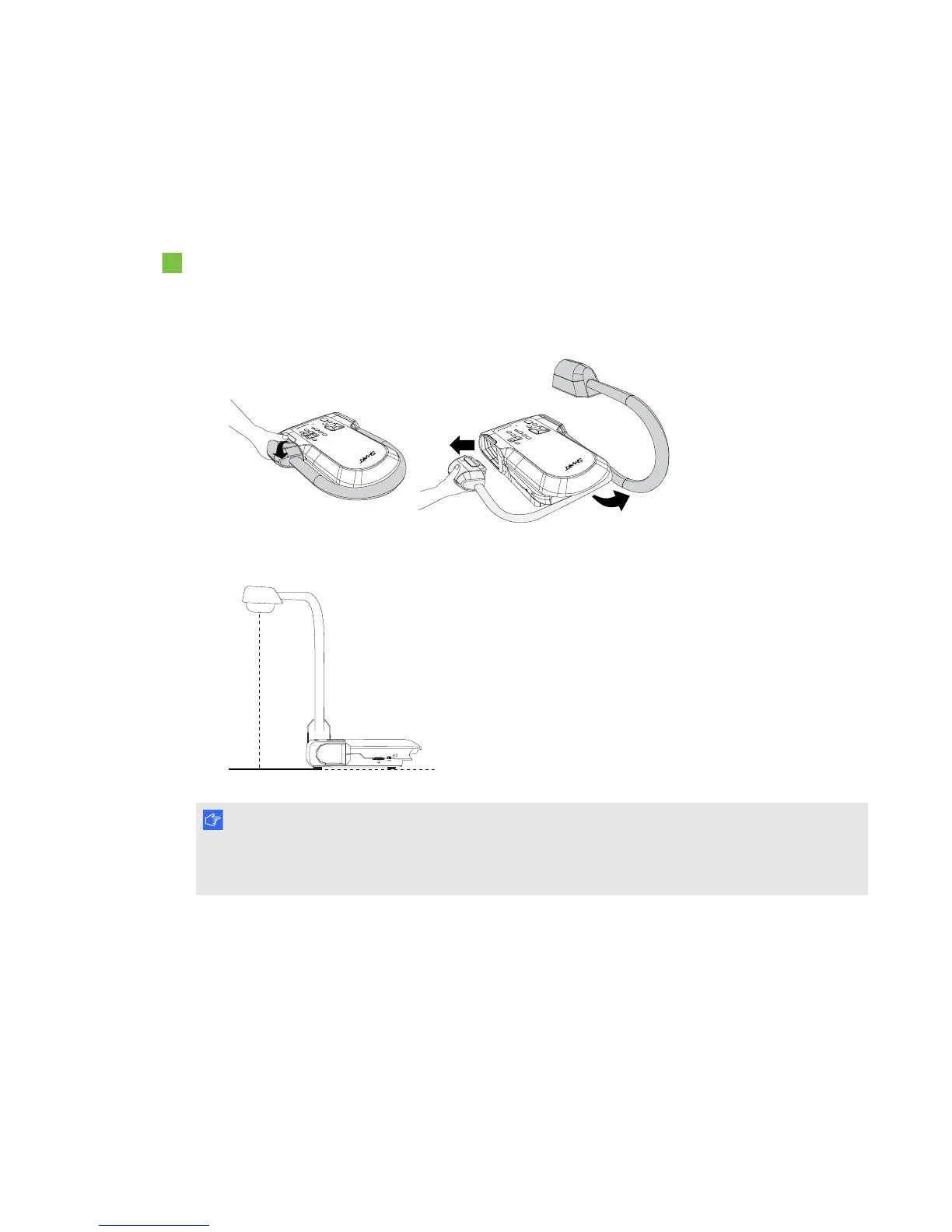 The document camera has a flexible arm with rotational movement for easy positioning display