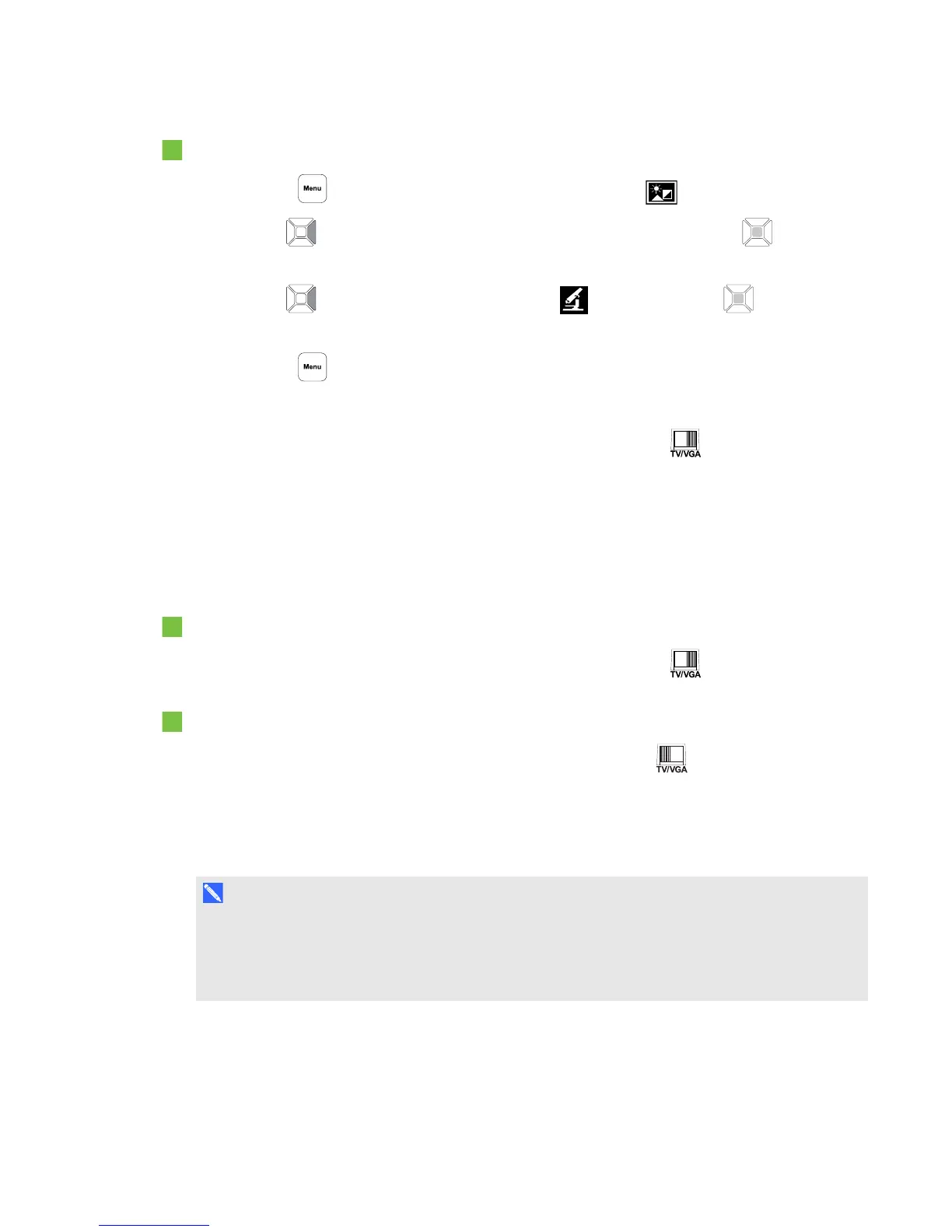 camera to the VGA mode. If you’re using a television with the composite video cable, set your