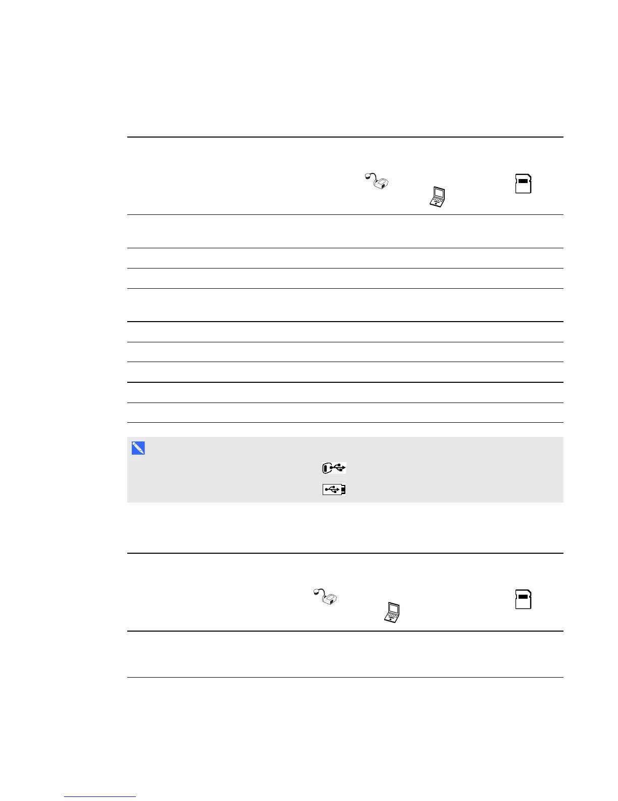 The following table describes outputs when your document camera is connected to a display with