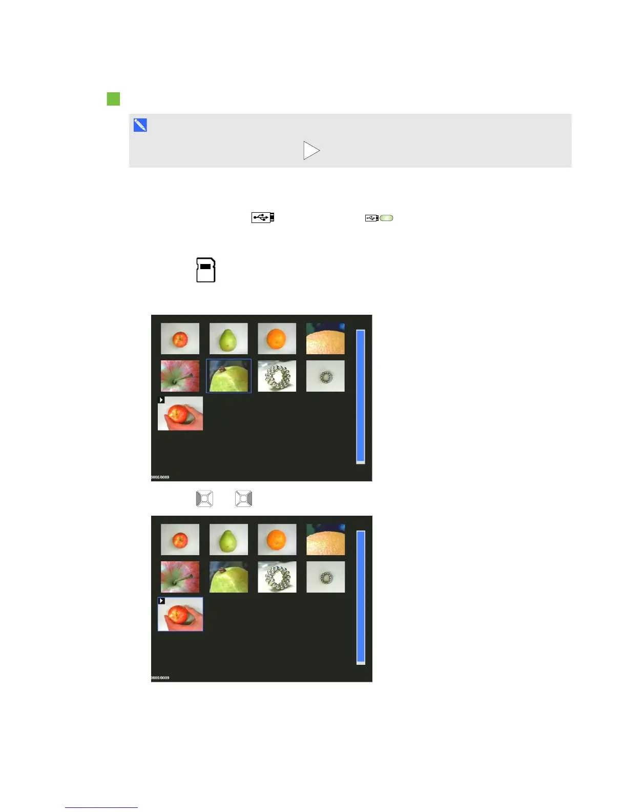 In the thumbnails view, videos have a symbol in the top left corner of the thumbnail image.