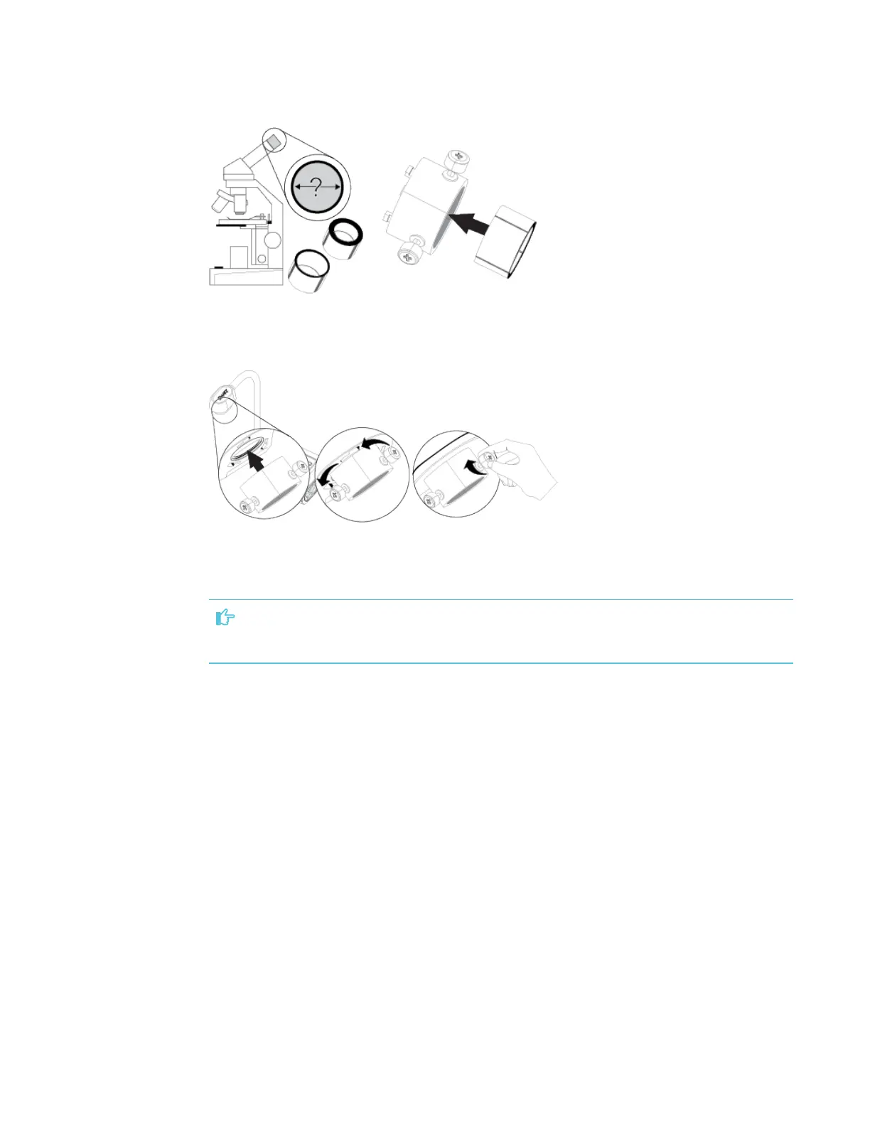 6. Turn the microscope adapter counterclockwise to line up the arrows and lock the microscope