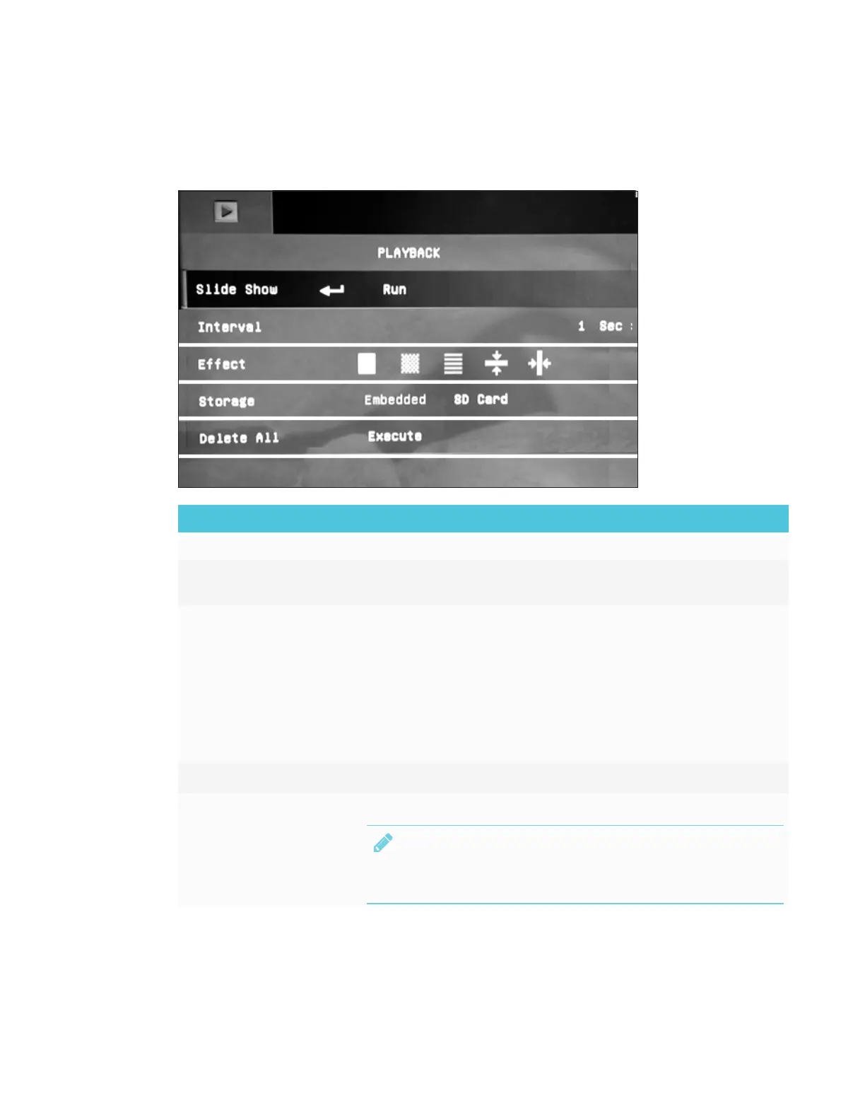 The following OSD menu options are available when your document camera is in Playback mode.