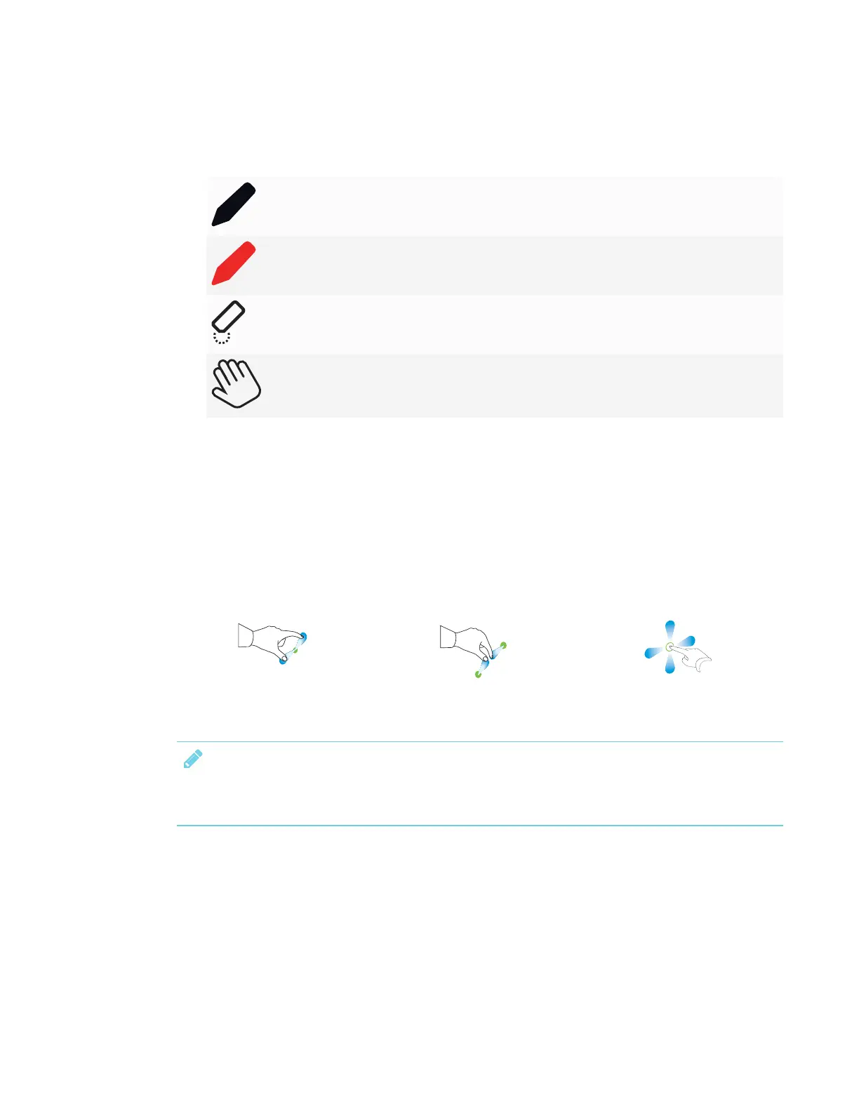 3. Tap the buttons on the bottom of the screen, and then use your fingers to write, erase, pan or