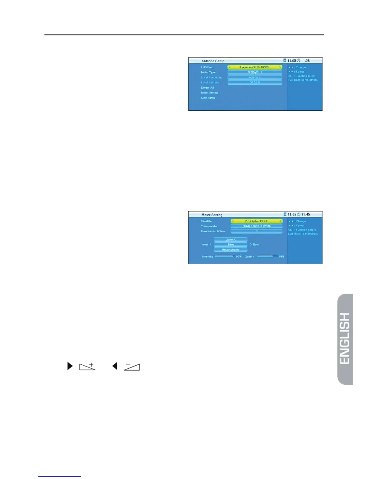 ¾ Select Motor Setting and press OK to open the submenu Motor Setting: