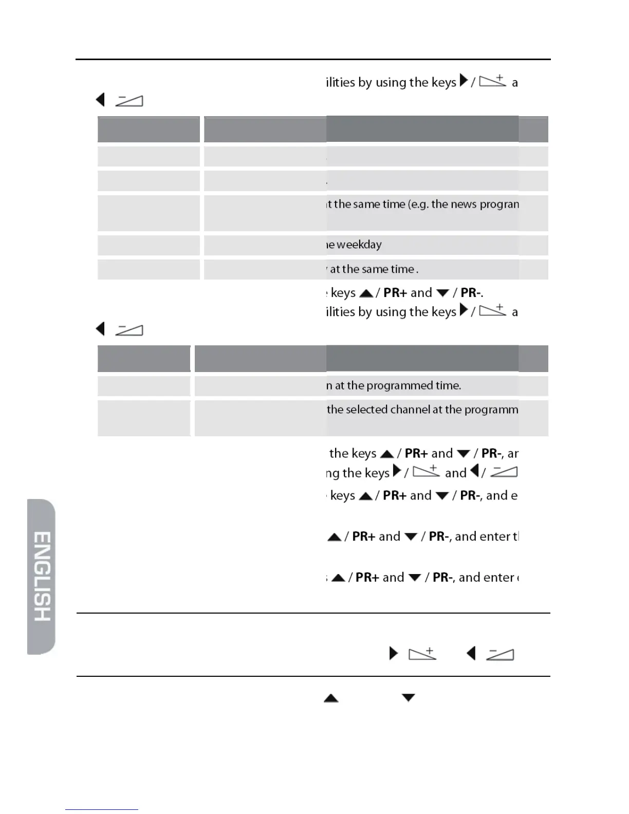 9. Mark the line Duration by using the keys / PR+ and / PR-, and enter dura-