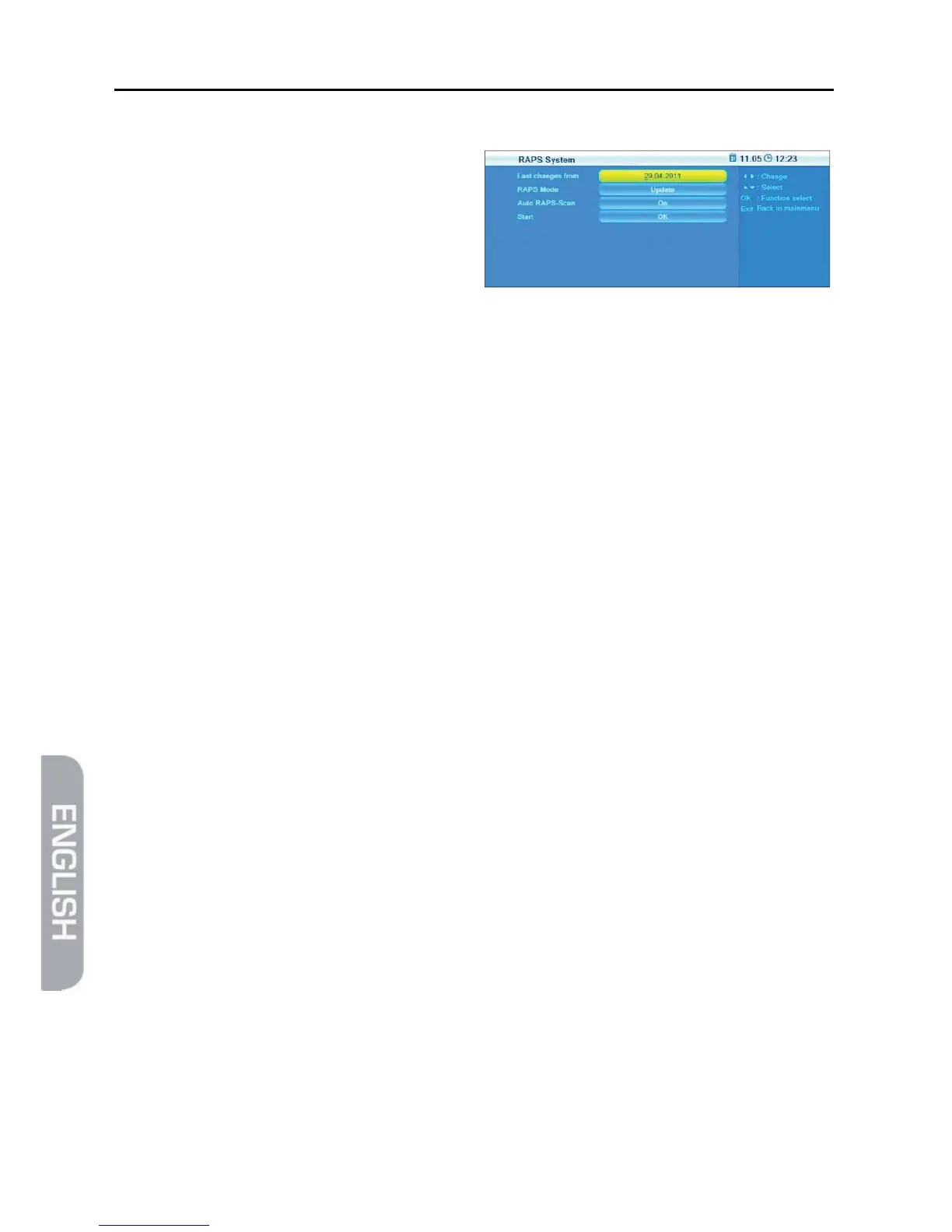 ¾ Select RAPS Mode to determine if the channel list should be completely recre-