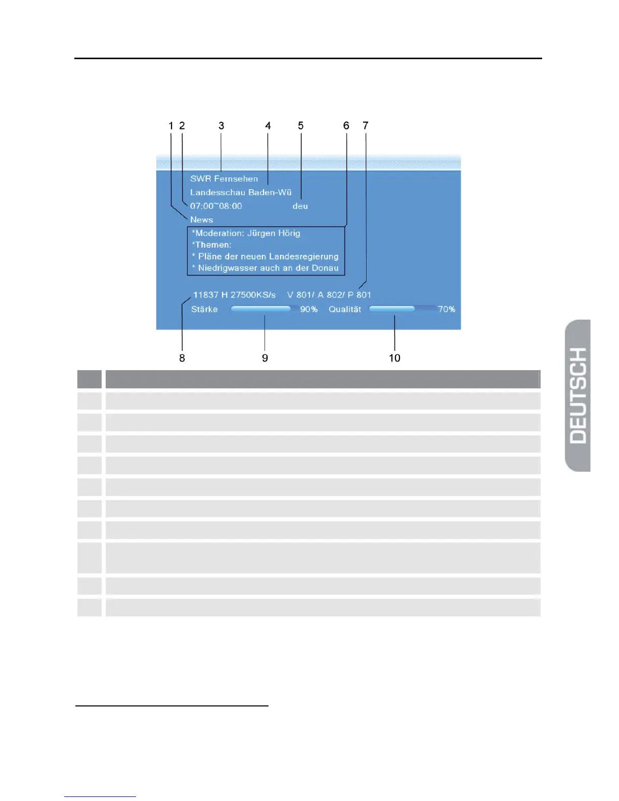 Drücken Sie zweimal die INFO-Taste. Sie erhalten folgendes Fenster: