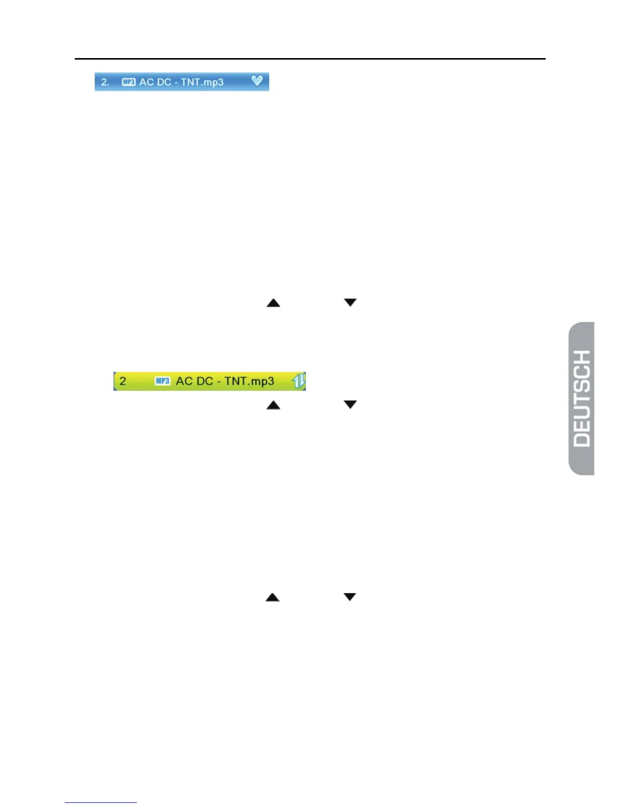 ¾ Drücken Sie die gelbe Funktionstaste, um alle Musikstücke des aktuellen Ver-