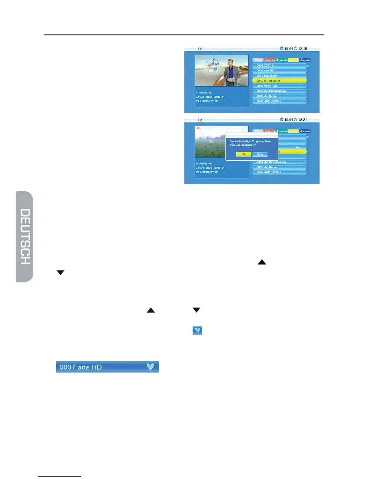 gemachten Änderungen übernehmen (OK - dann wird die Programmliste entspre-