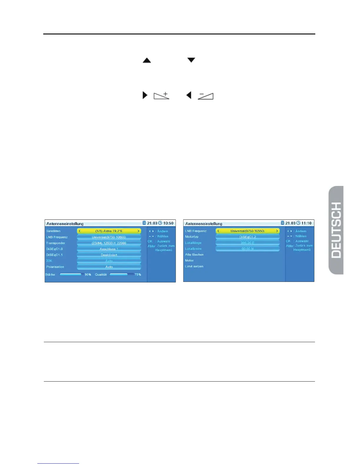 ¾ Wählen Sie unter Satellit den Satelliten aus für den die nachfolgenden Einstel-