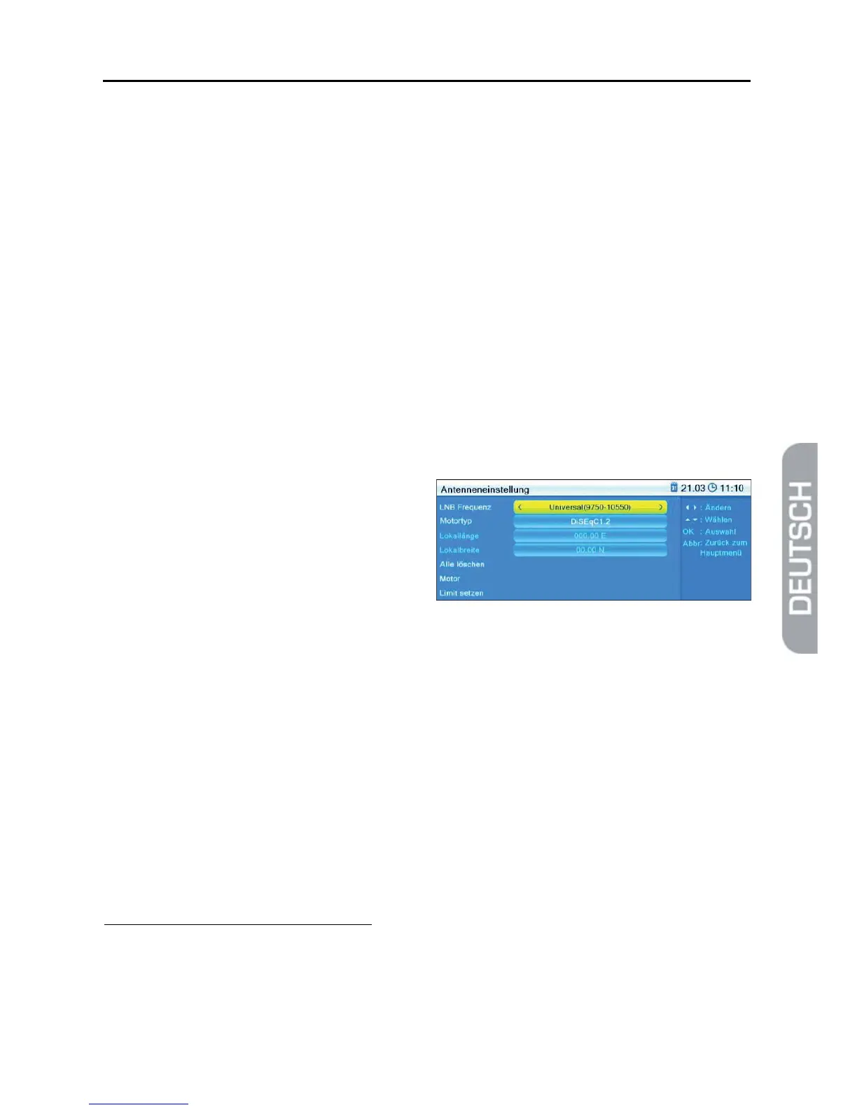 ¾ Wählen Sie Alle löschen, um alle bisher eingestellten Satellitenpositionen wie-