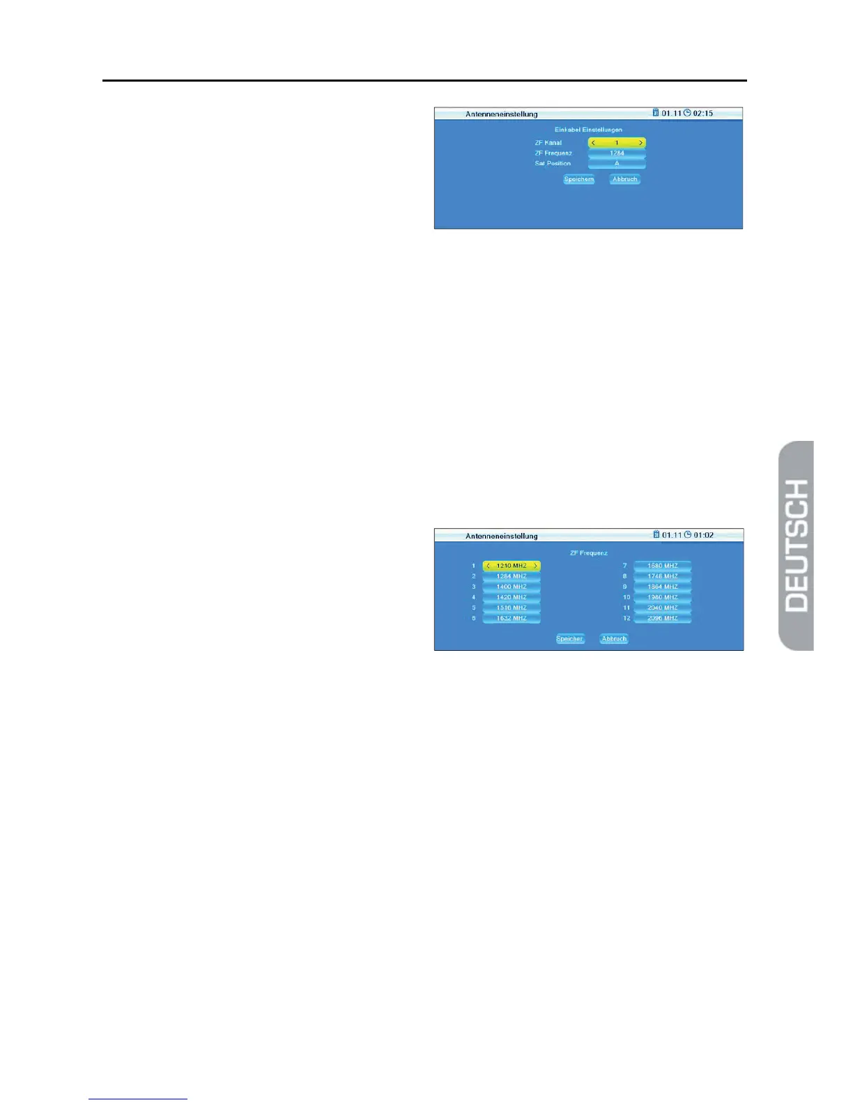 zu speichern und zum Untermenü Antenneneinstellung zurückzukehren
