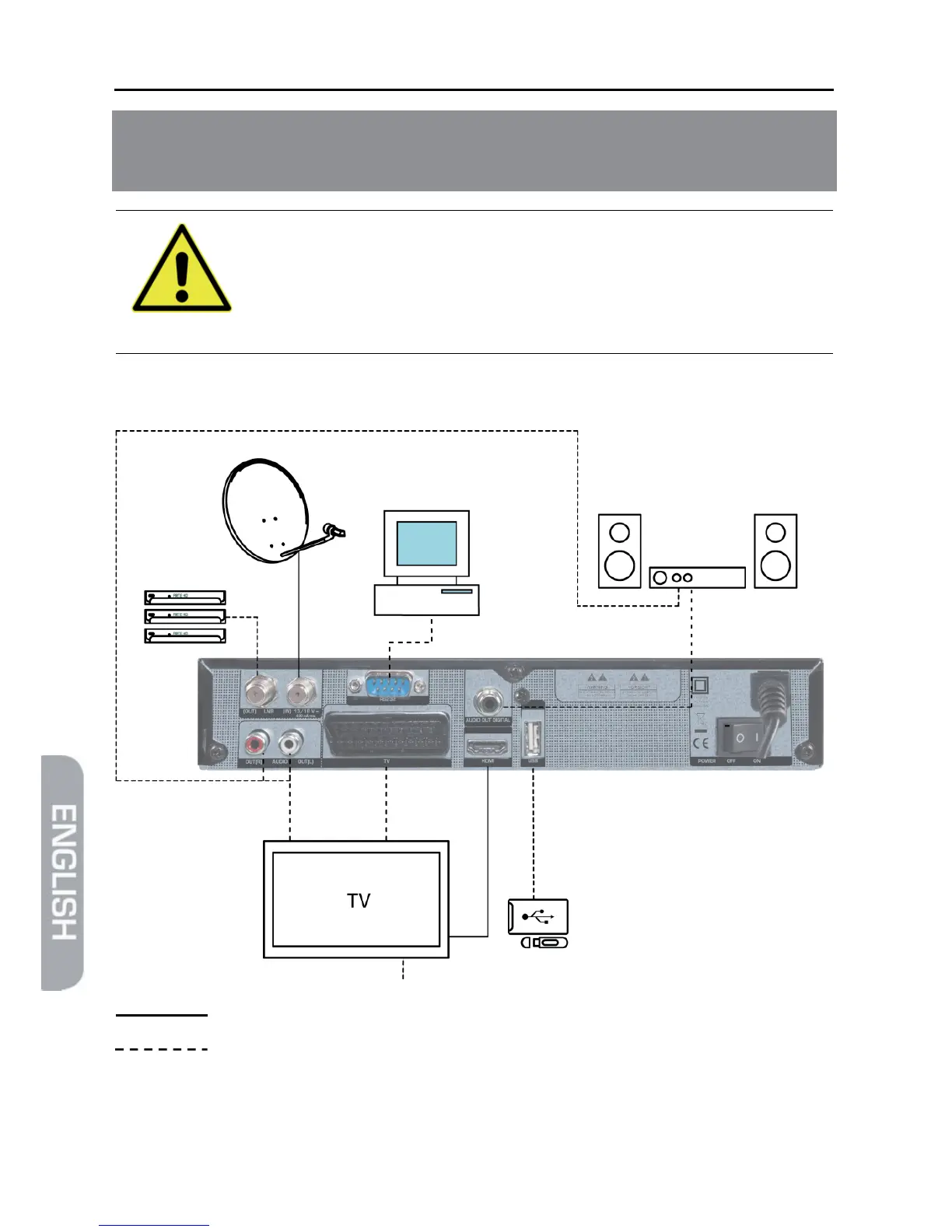 ¾ First connect the receiver to the satellite antenna and any