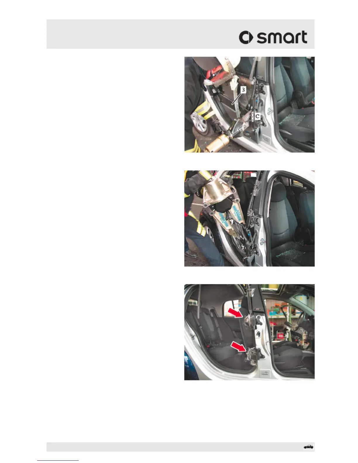 Cut through the crossmember (3) (cut C)