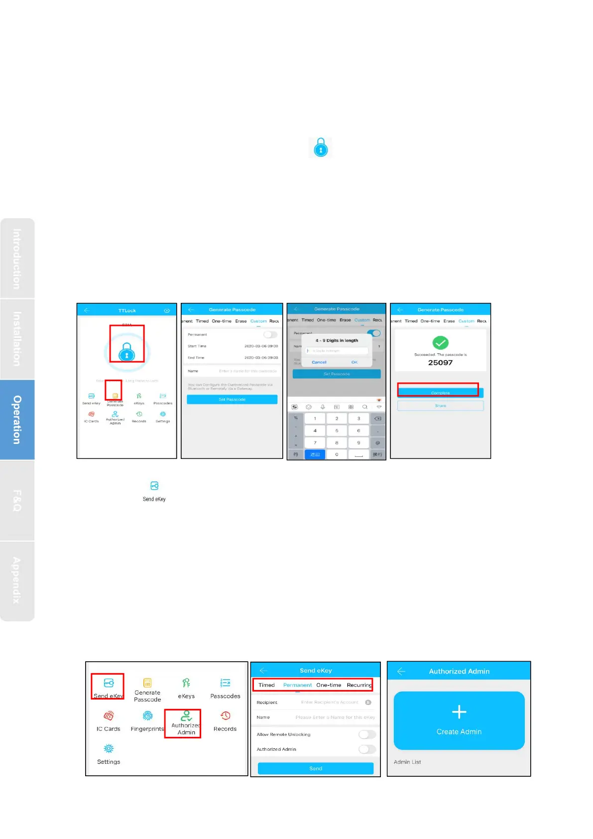 permanent, time-limited, single, clear, cycle, and custom.(You can share the Passcode to