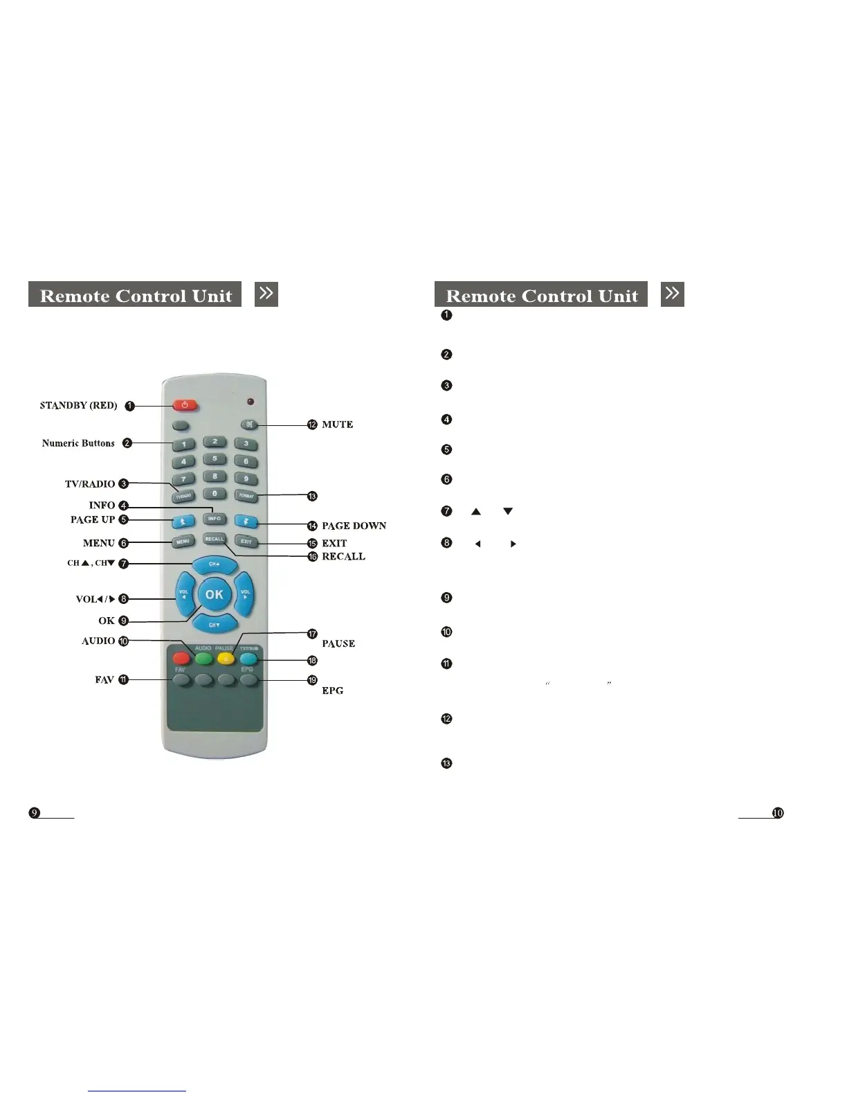 Switches between TV and Radio modes.