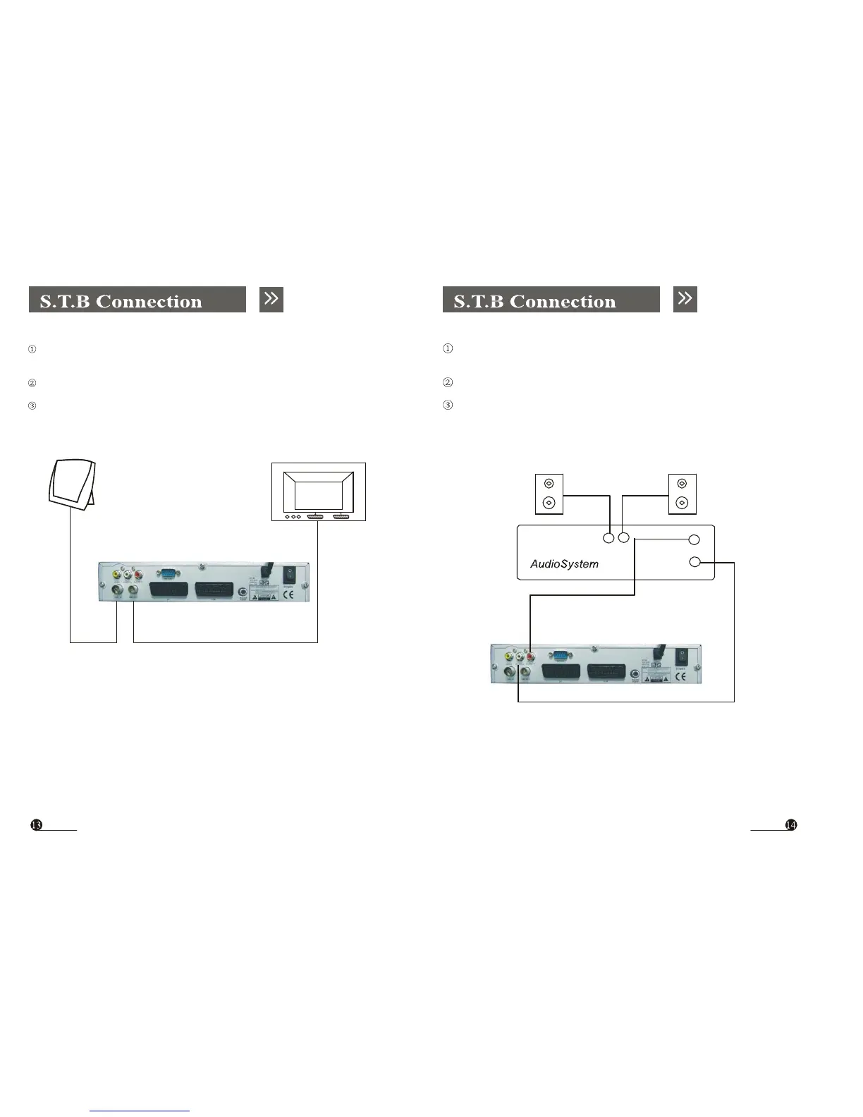 Connect the AUDIO R, L socket of the STB to theAudio System like HI-FI,