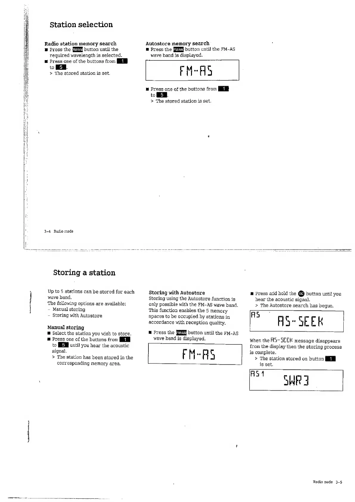 SMART radio five - Station Selection; Storing a Station