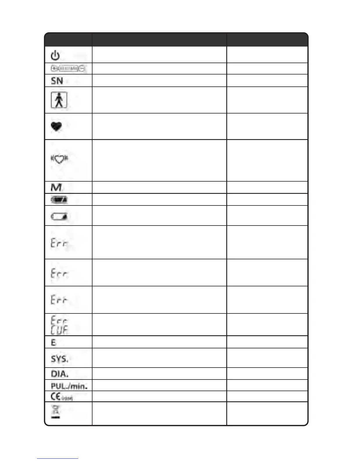 Symbols Function / Meaning Recommended Action