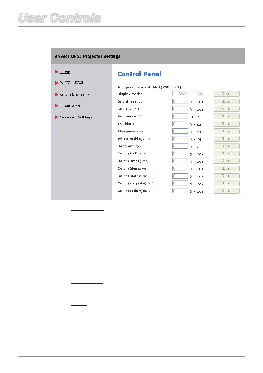 Allows you to adjust the color performance of the display.