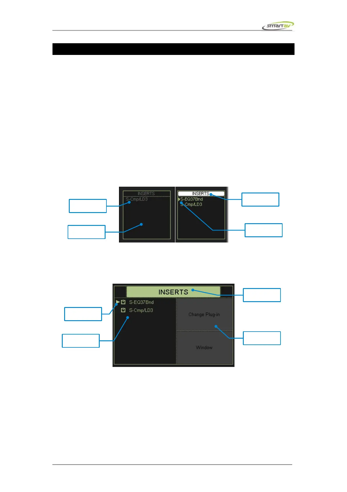 The inserts block consists of four slots, corresponding to the first four plug-ins present on the channel