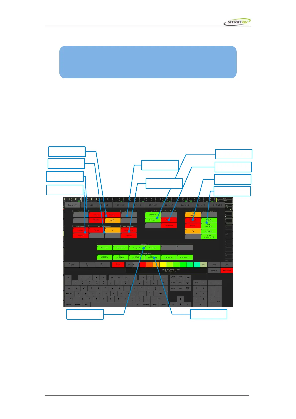 Transport, Monitor & GPIO keys panel. Unlike the programmable keys the button labels are only