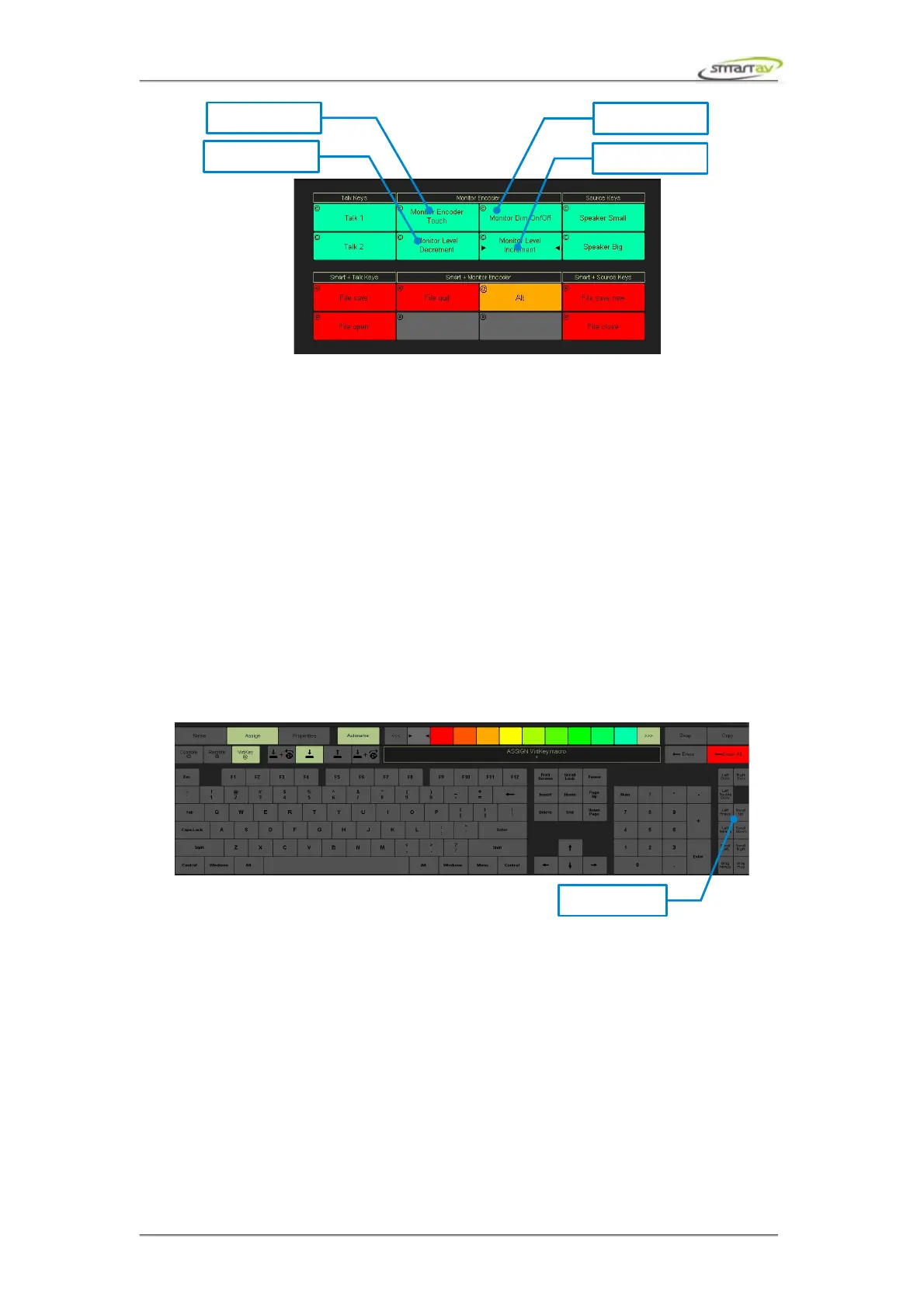 assign these functions to the monitor encoder. For instance, assign scroll left and scroll right function to