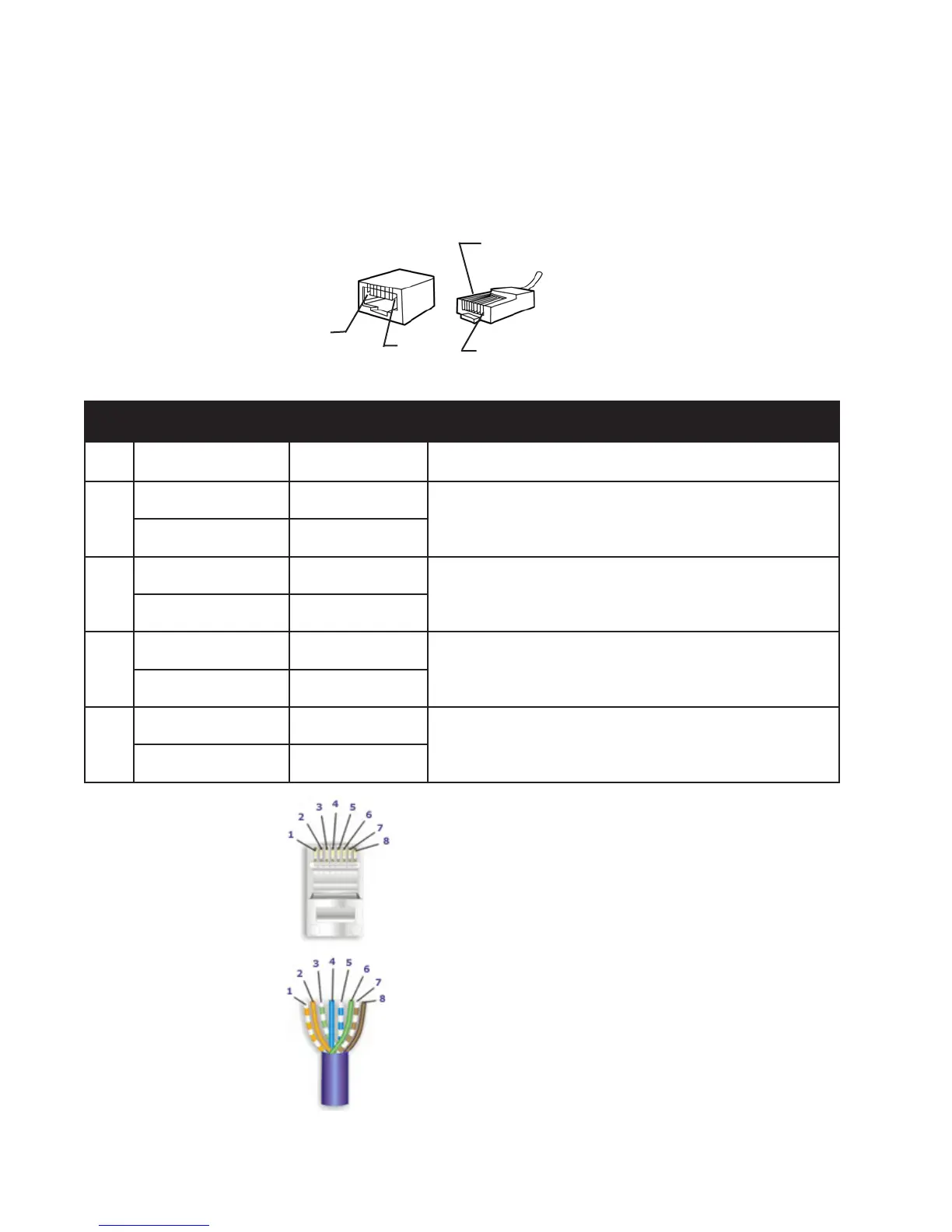 Table below describes the pinout configuration of the SmartAVI Cat5