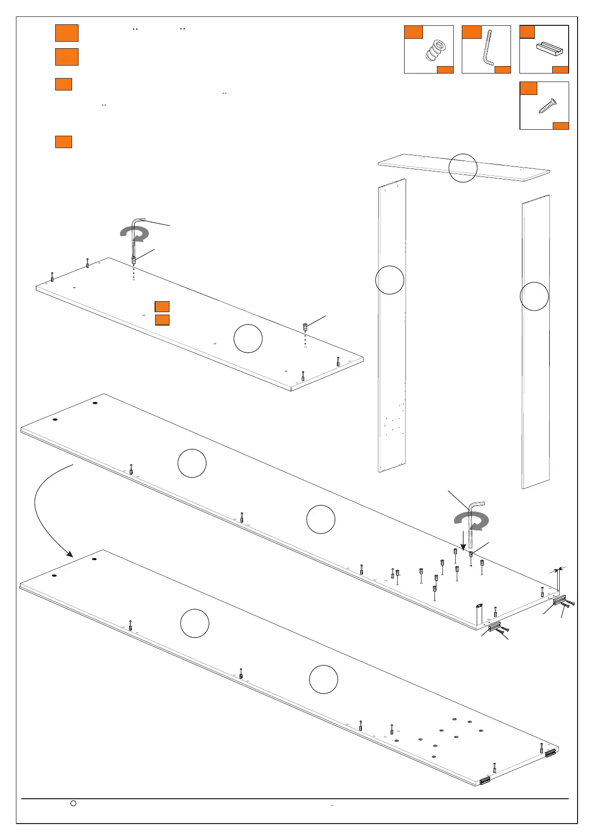 Die Fuße auf beiden Seiten im gleichen Abstand montieren.