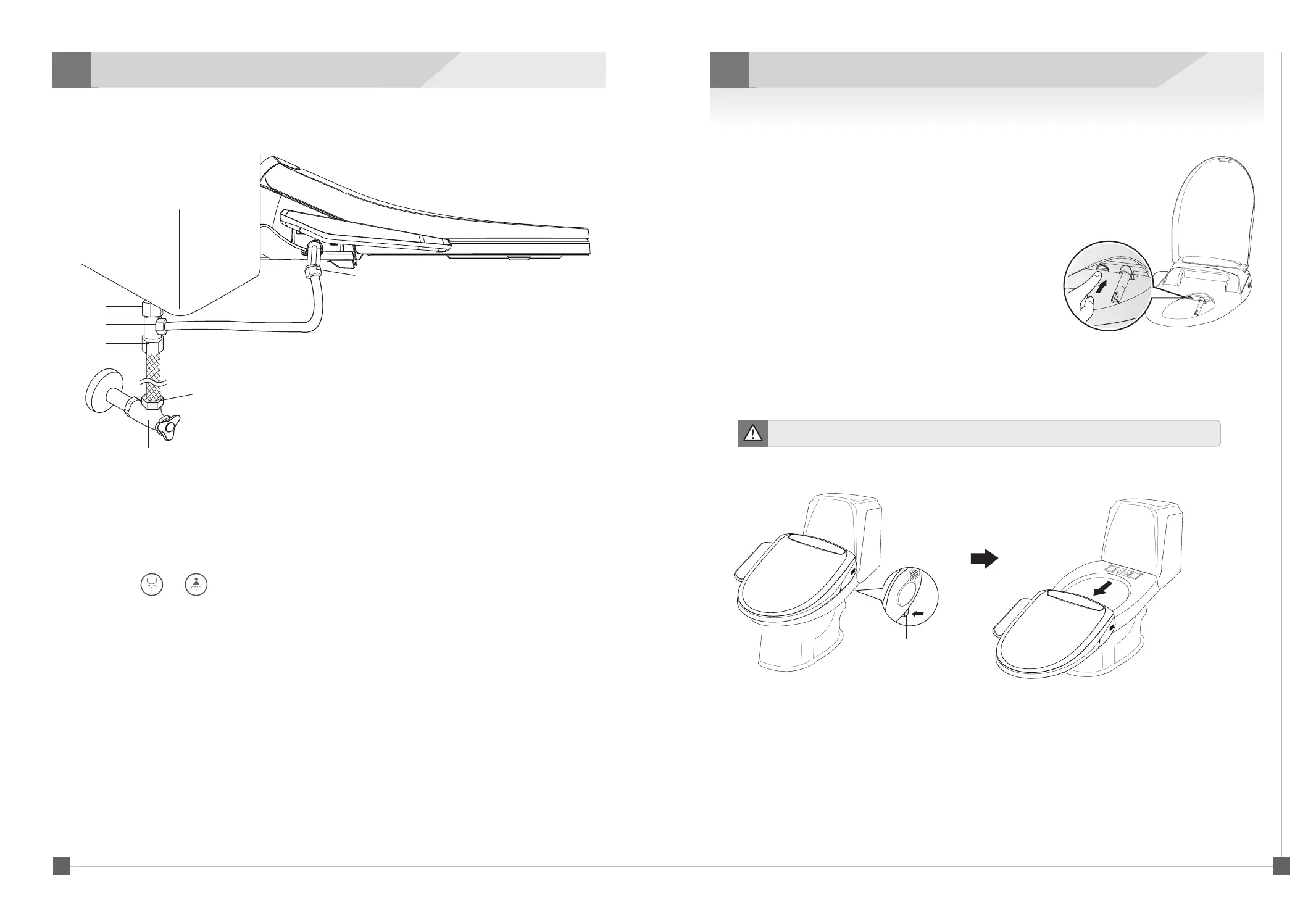 • Please be aware that water will come out. This product can only operate when the user sits on the