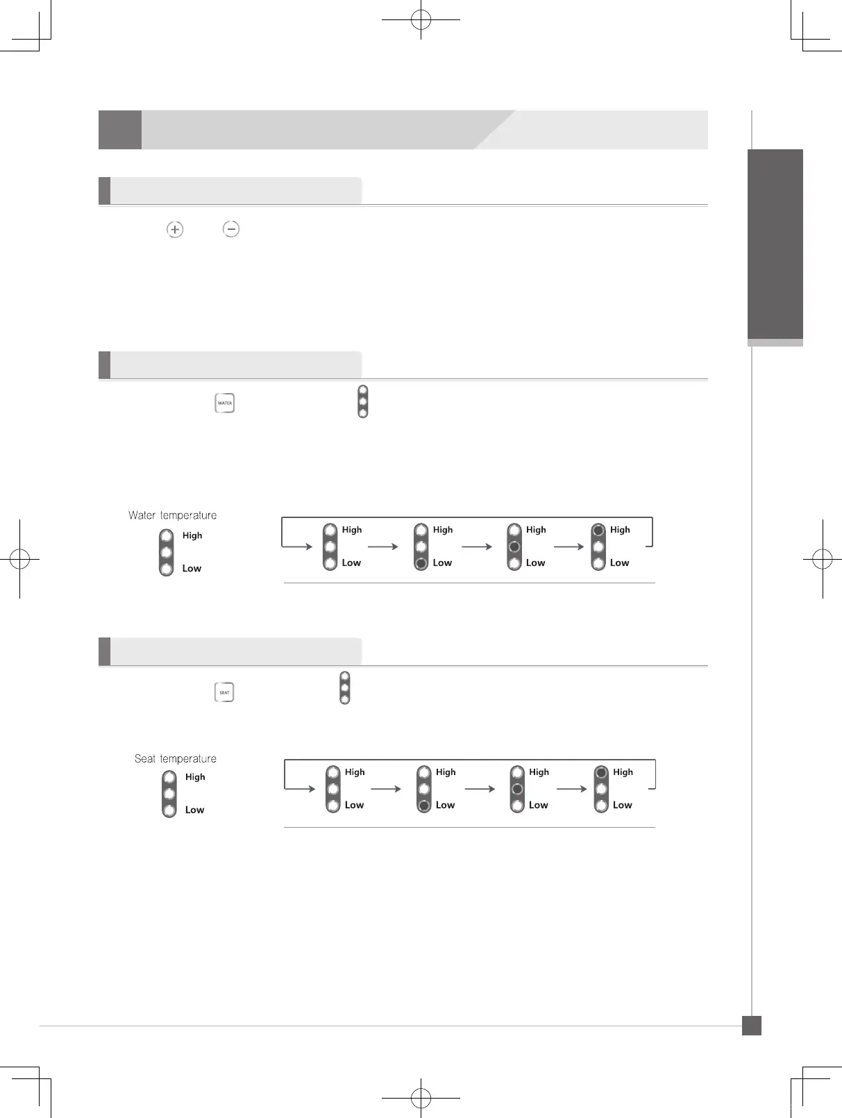 ᆞPress (high), (low) for the Water/Dryer (Water pressure can be adjusted 1~5 levels.)